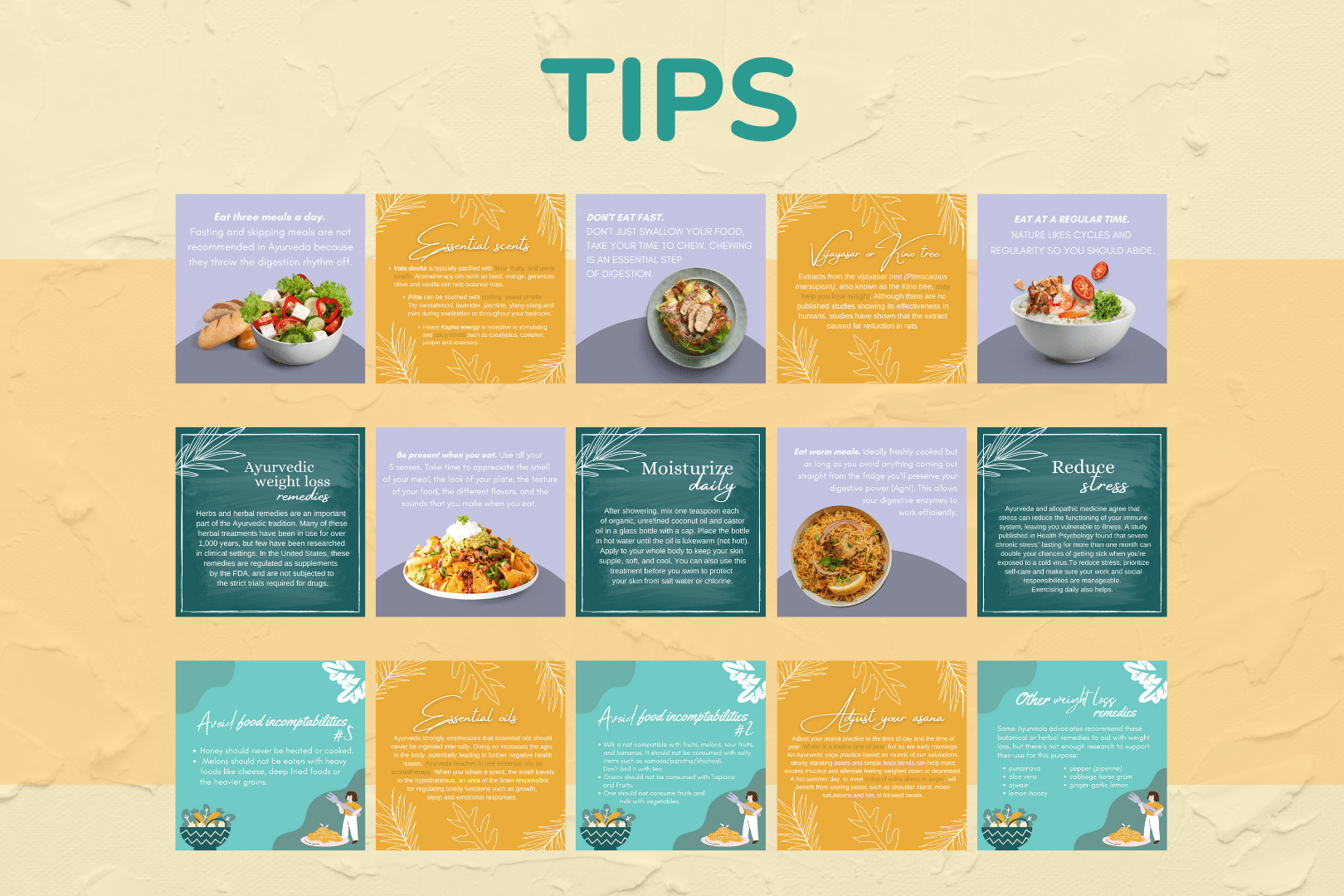 Breng de kracht van Ayurveda tot leven op social media met 200 kant-en-klare templates. Speciaal ontworpen voor therapeuten, ayurvedische coaches en ondernemers in natuurlijke gezondheid.