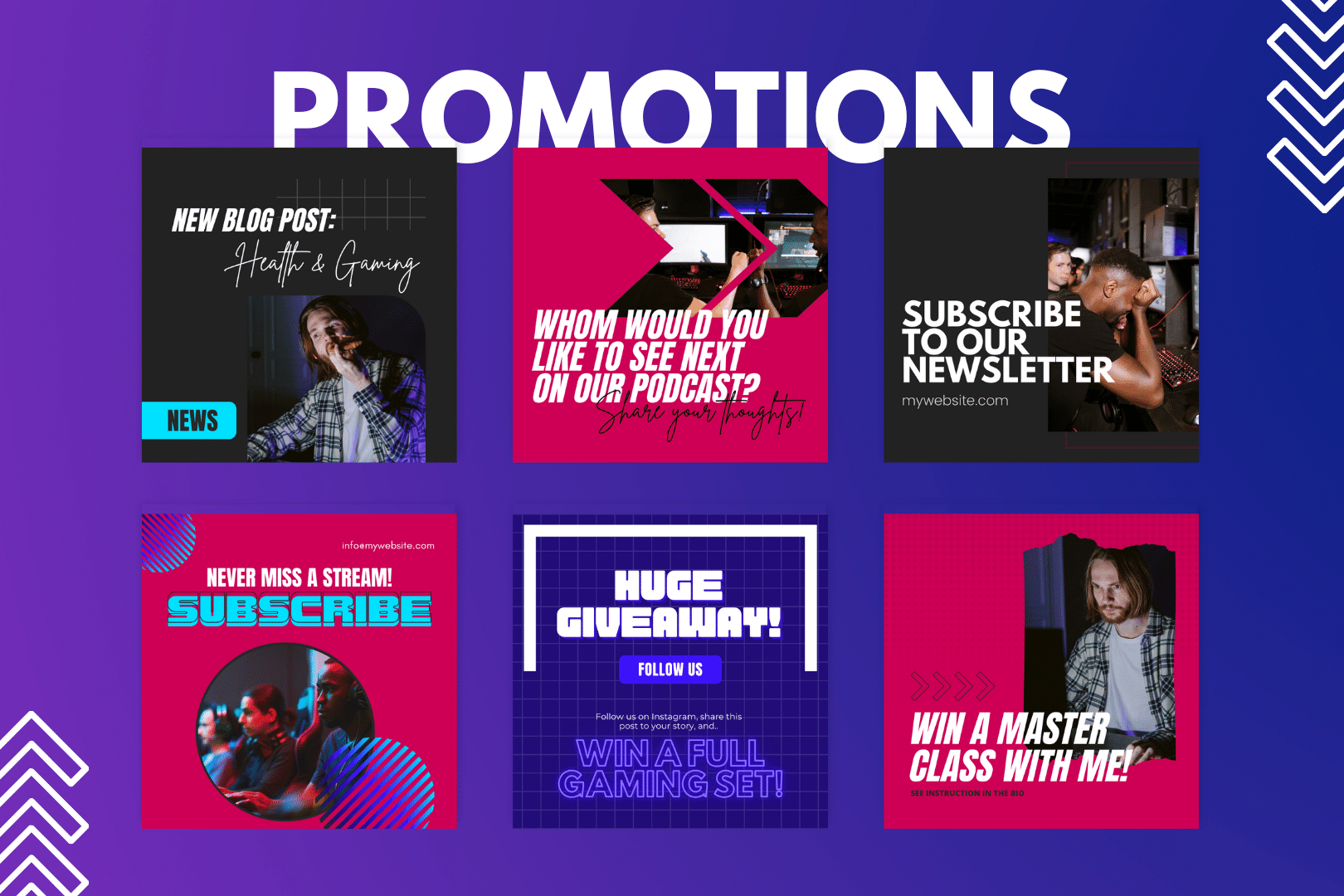Maak indruk op social media met 200 kant-en-klare templates speciaal voor de gaming wereld Of je nu gamer bent, een team runt of een gaming-gerelateerd bedrijf hebt, met deze bundel val je op en trek je de juiste volgers aan.