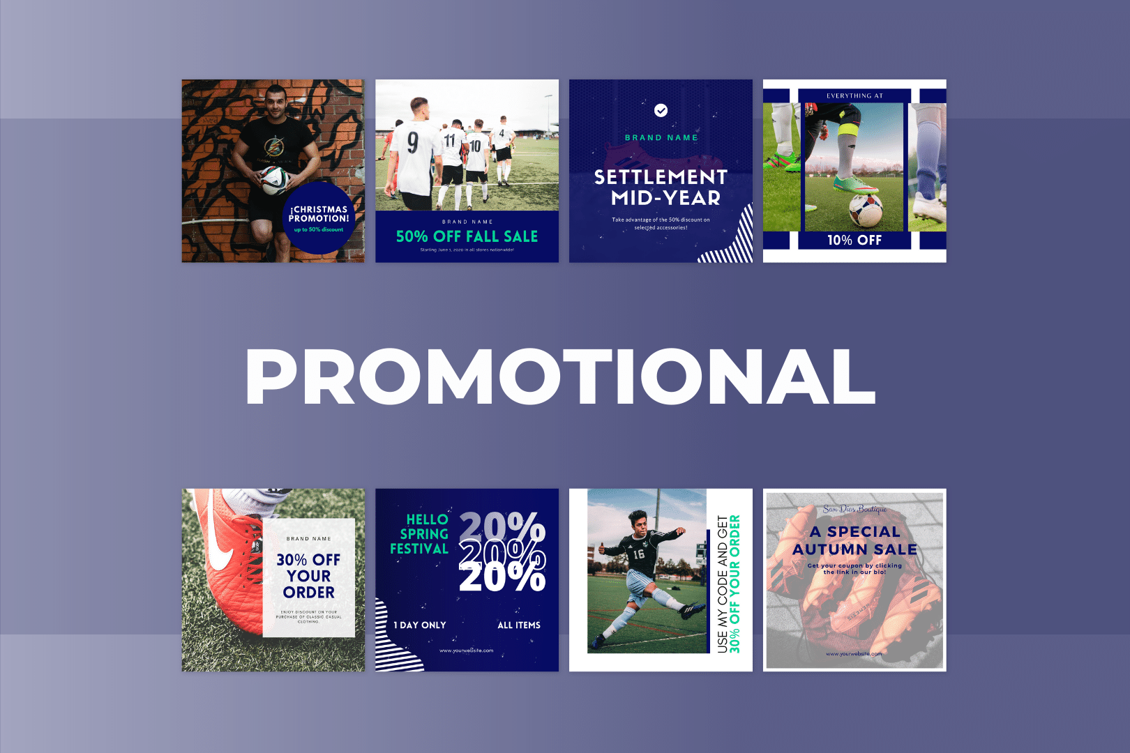 Met deze 200 templates vergroot je je zichtbaarheid, trek je meer volgers aan en breng je meer actie in je social media. Perfect om jouw club, merk of winkel sterker en sportiever neer te zetten.