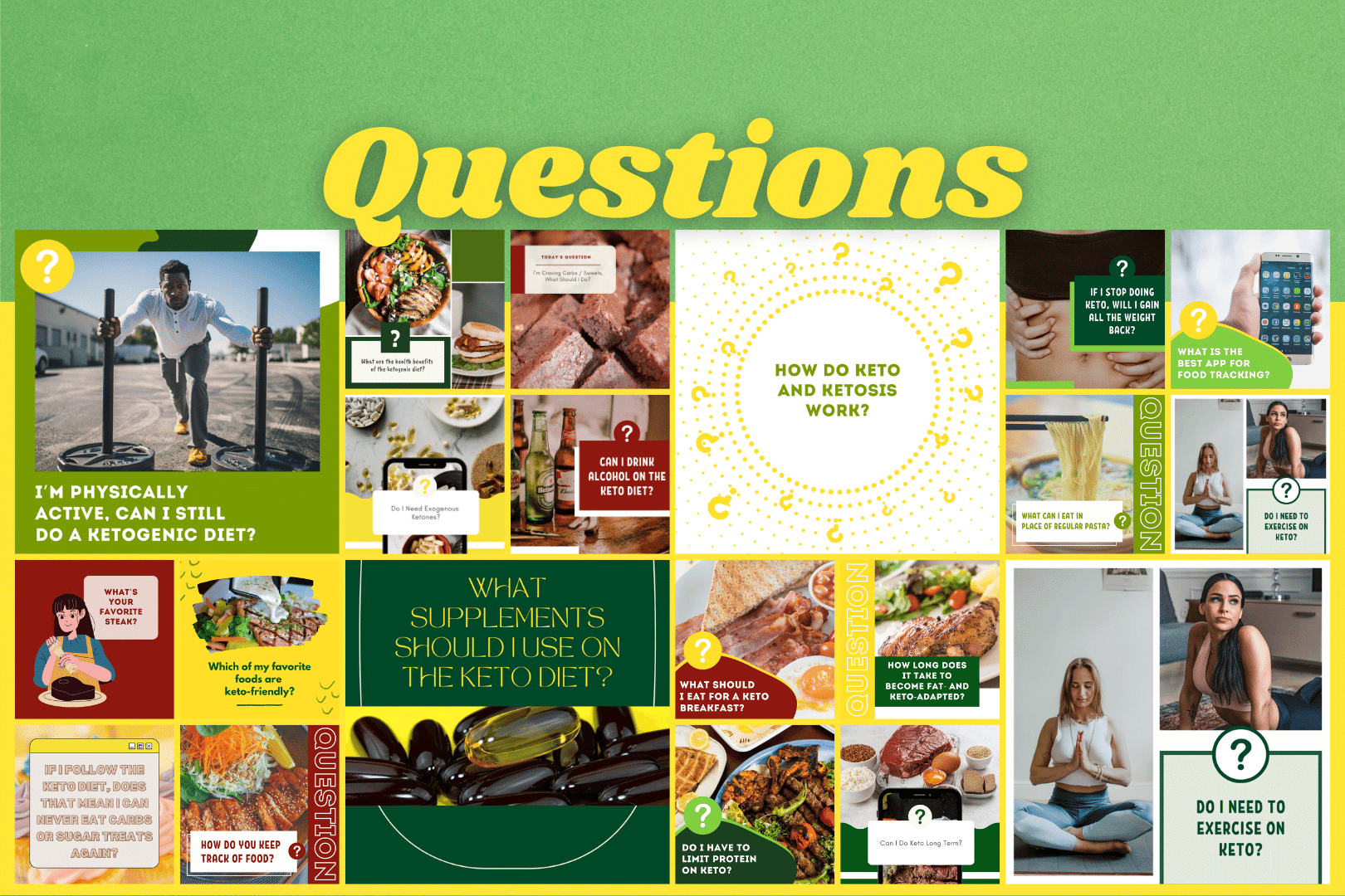 Maak in een handomdraai aantrekkelijke posts met deze 200 kant-en-klare Keto Templates voor social media.