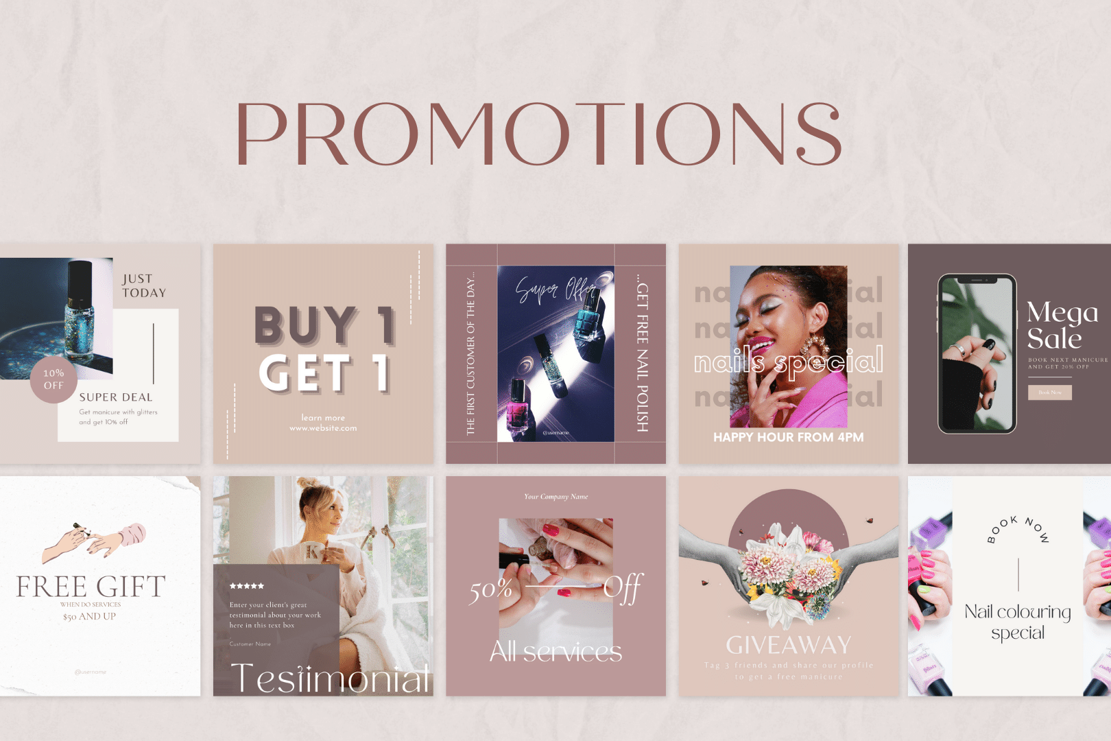 – 50 promotieposts om behandelingen, acties of looks te promoten