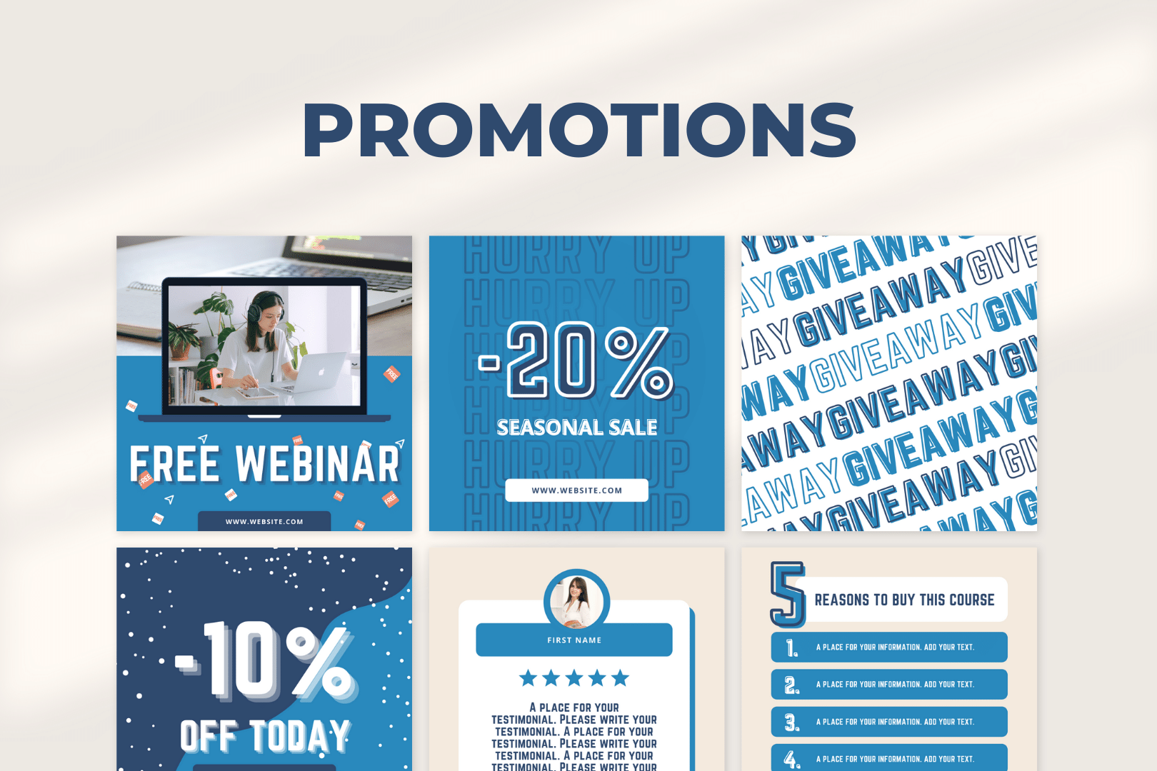 Gebruik dan deze 200 strak vormgegeven templates voor online cursussen op social media.