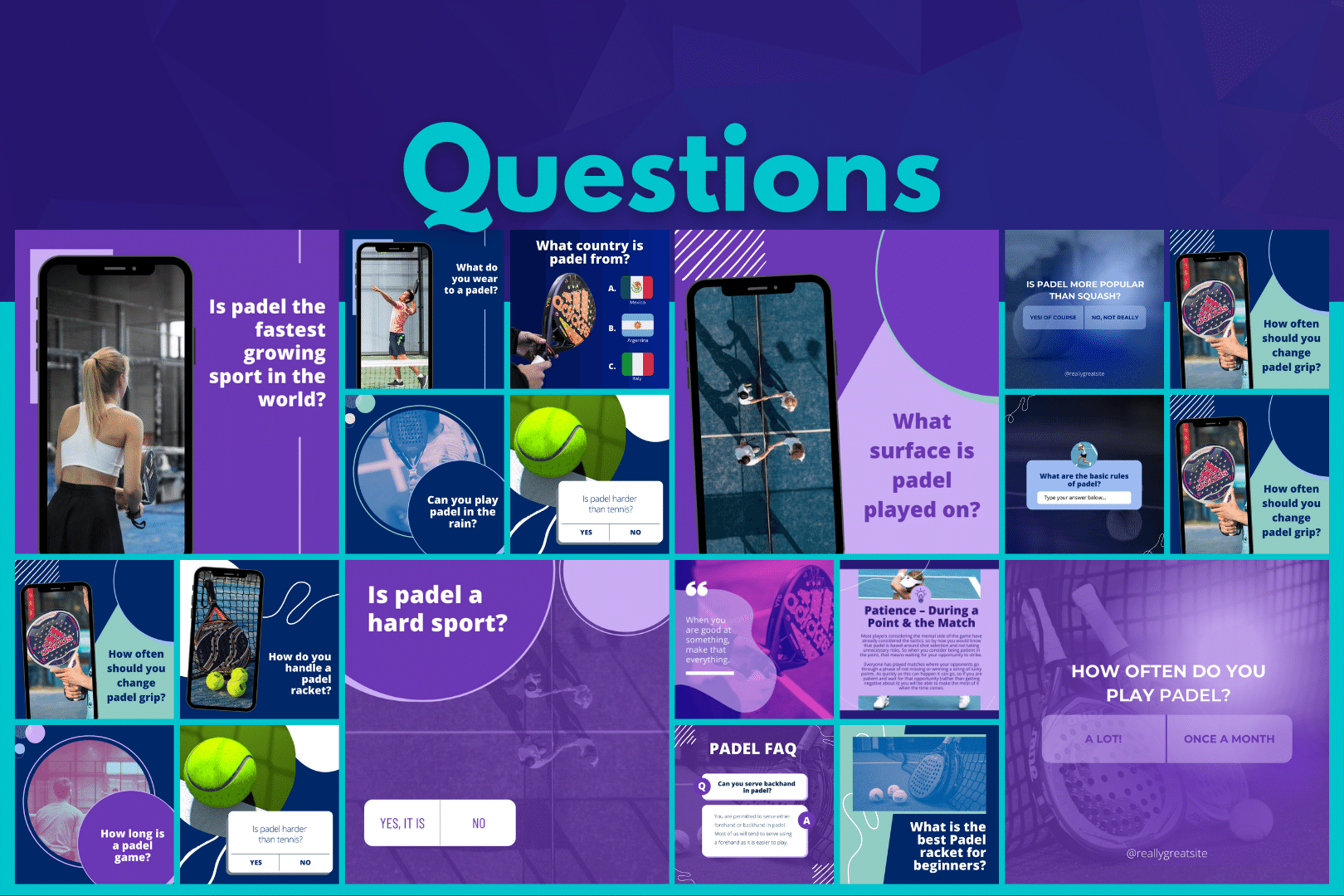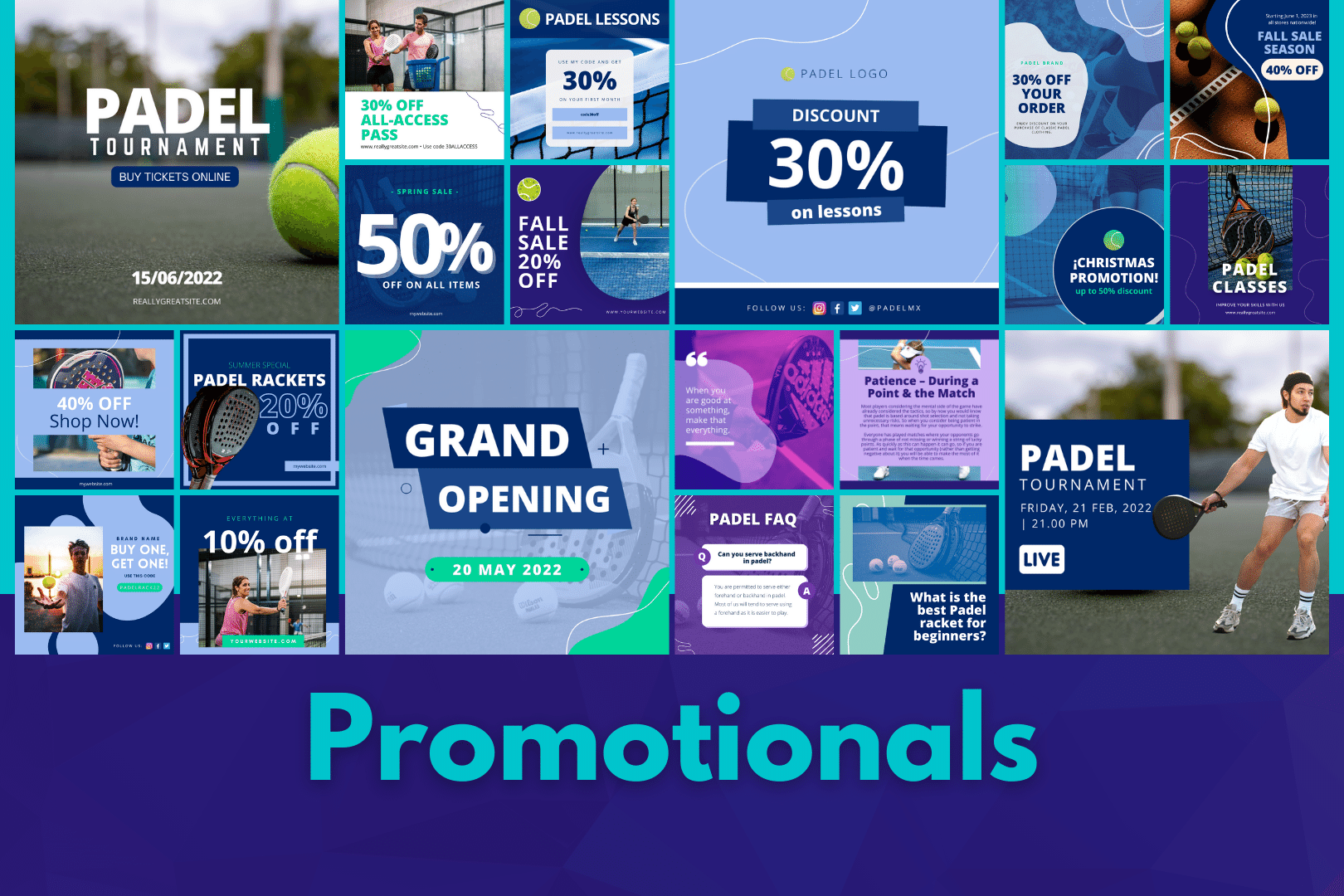 Ontvang 200 kant en klare Padel templates voor social media. Perfect voor iedere padelliefhebber, clubmanager of ondernemer met een sportwinkel die meer zichtbaarheid wil en online wil opvallen. Met deze templates vergroot je op een toegankelijke manier je bereik, je volgers, je interactie en je omzet.