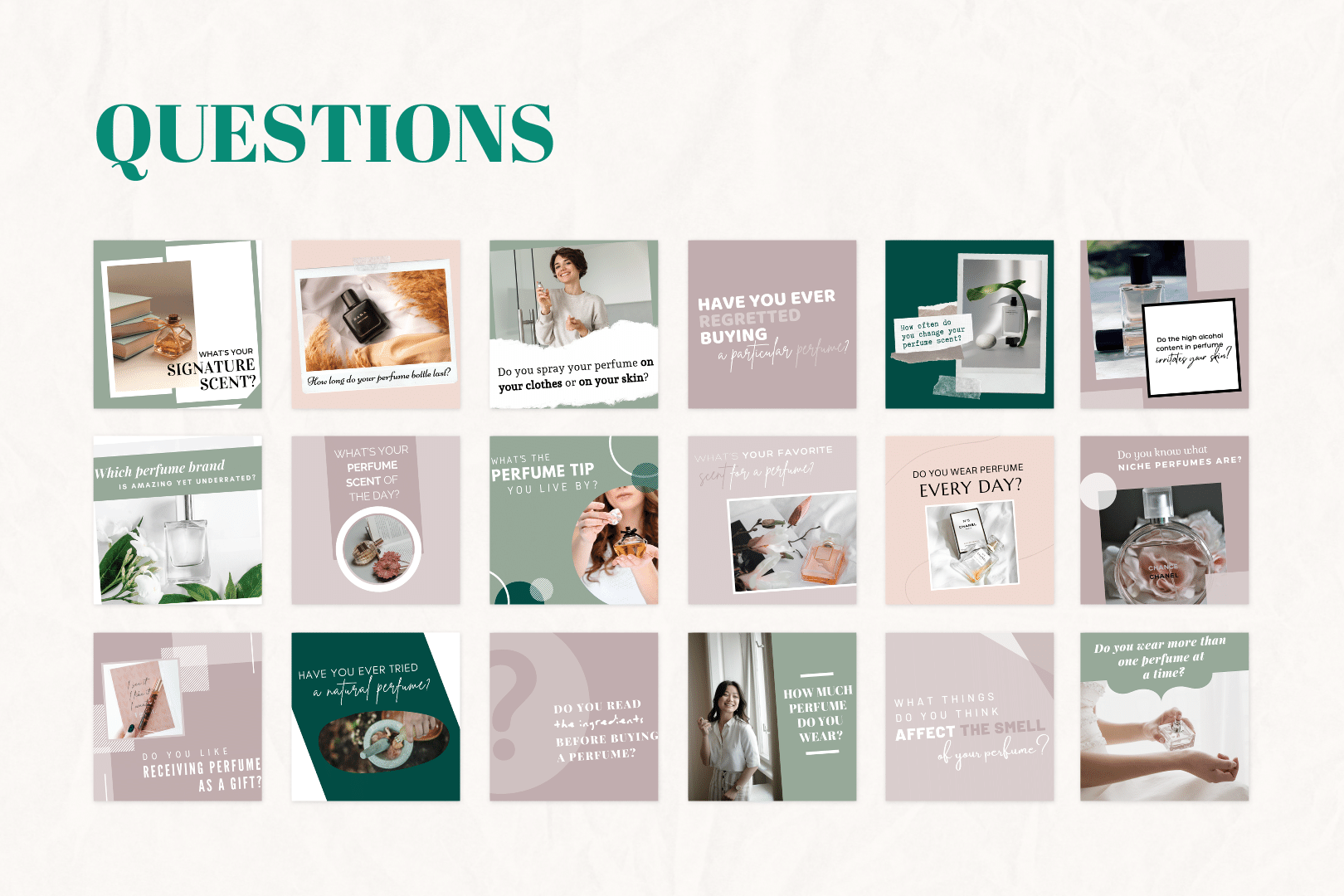 Deze templates zijn speciaal gemaakt om jouw publiek te betrekken en je verkoop te stimuleren. Perfect voor beauty consultants, verkoopspecialisten in de retail en ondernemers die hun parfumlijn online willen promoten.