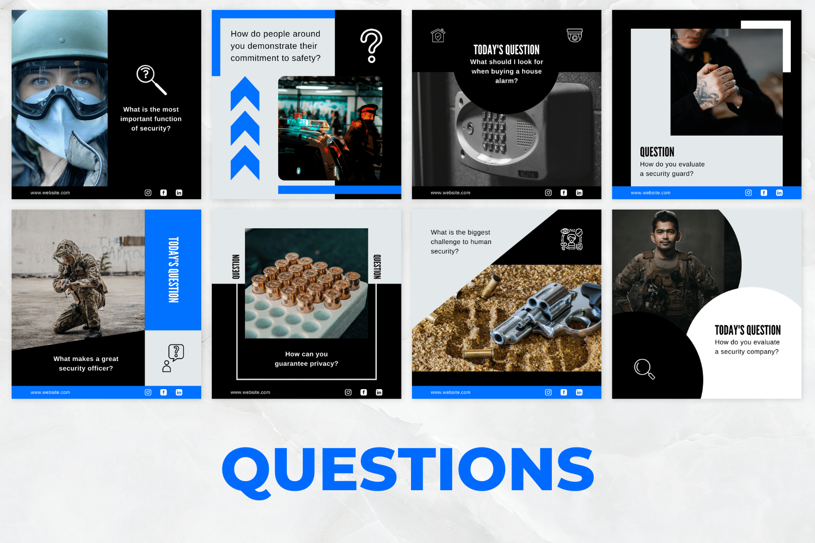 Ontvang 200 kant en klare templates voor security- en beveiligingsdiensten voor social media. Ideaal voor iedere beveiliger, security manager, ondernemer of dienstverlener die zijn professionaliteit zichtbaarder wil maken en online meer klanten wil aantrekken. Met deze templates vergroot je eenvoudig je bereik, je volgers, je interactie en je omzet.