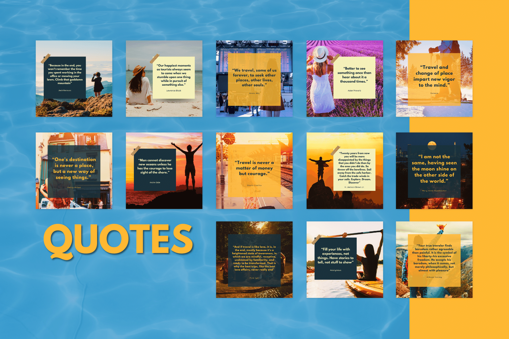 Deze bundel is ideaal voor reisbureaus, travel influencers en ondernemers die minder losse taken willen doen en juist beter zichtbaar willen zijn met sterke content. Deze zorgvuldig samengestelde kant-en-klare templates helpen je om uit te groeien tot een inspirerend en motiverend reismerk op social media.