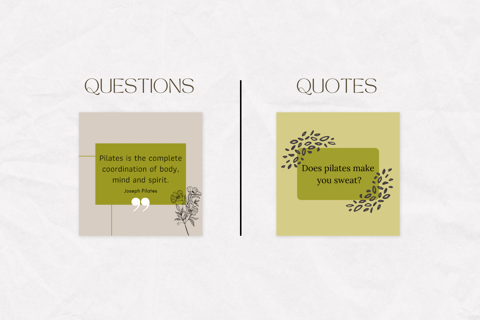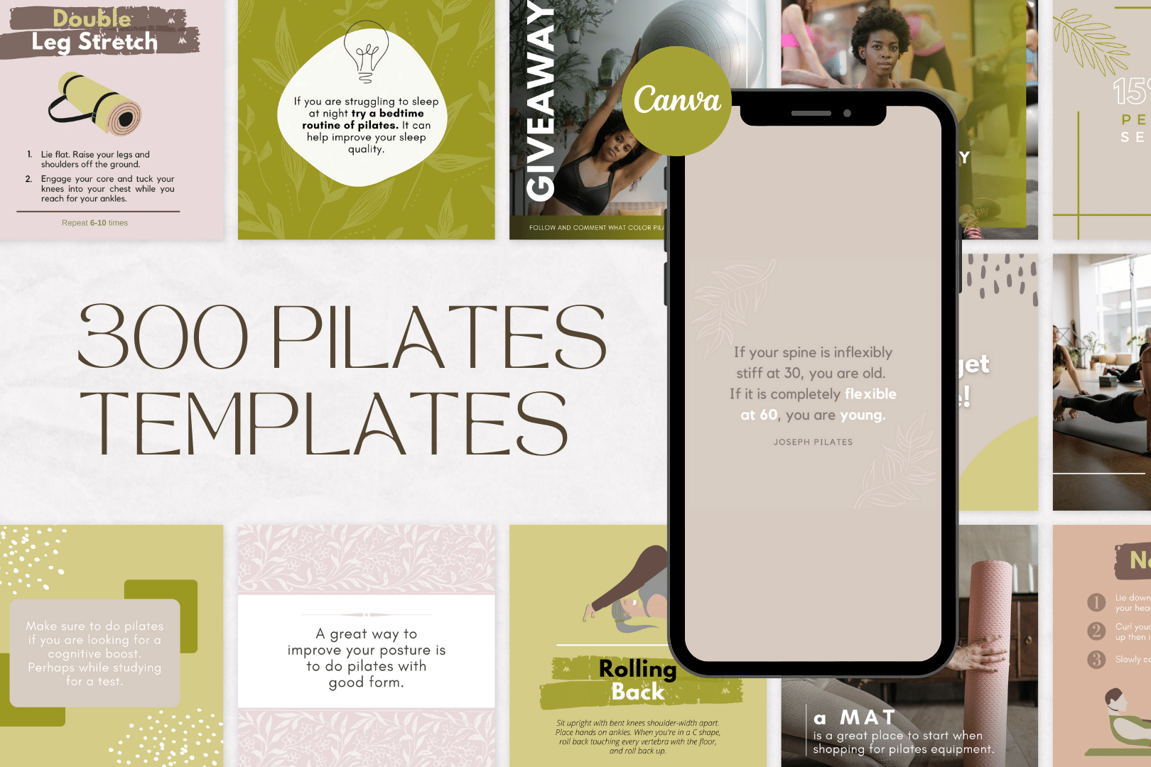 Ontvang 300 kant en klare Pilates templates voor social media. Ideaal voor iedere Pilates coach, of trainer, die meer zichtbaarheid wil, een professionele uitstraling zoekt en online meer klanten wil aantrekken. Met deze templates zet je in een paar tellen content klaar die zorgt voor meer bereik, volgers, betrokkenheid en verkoop.