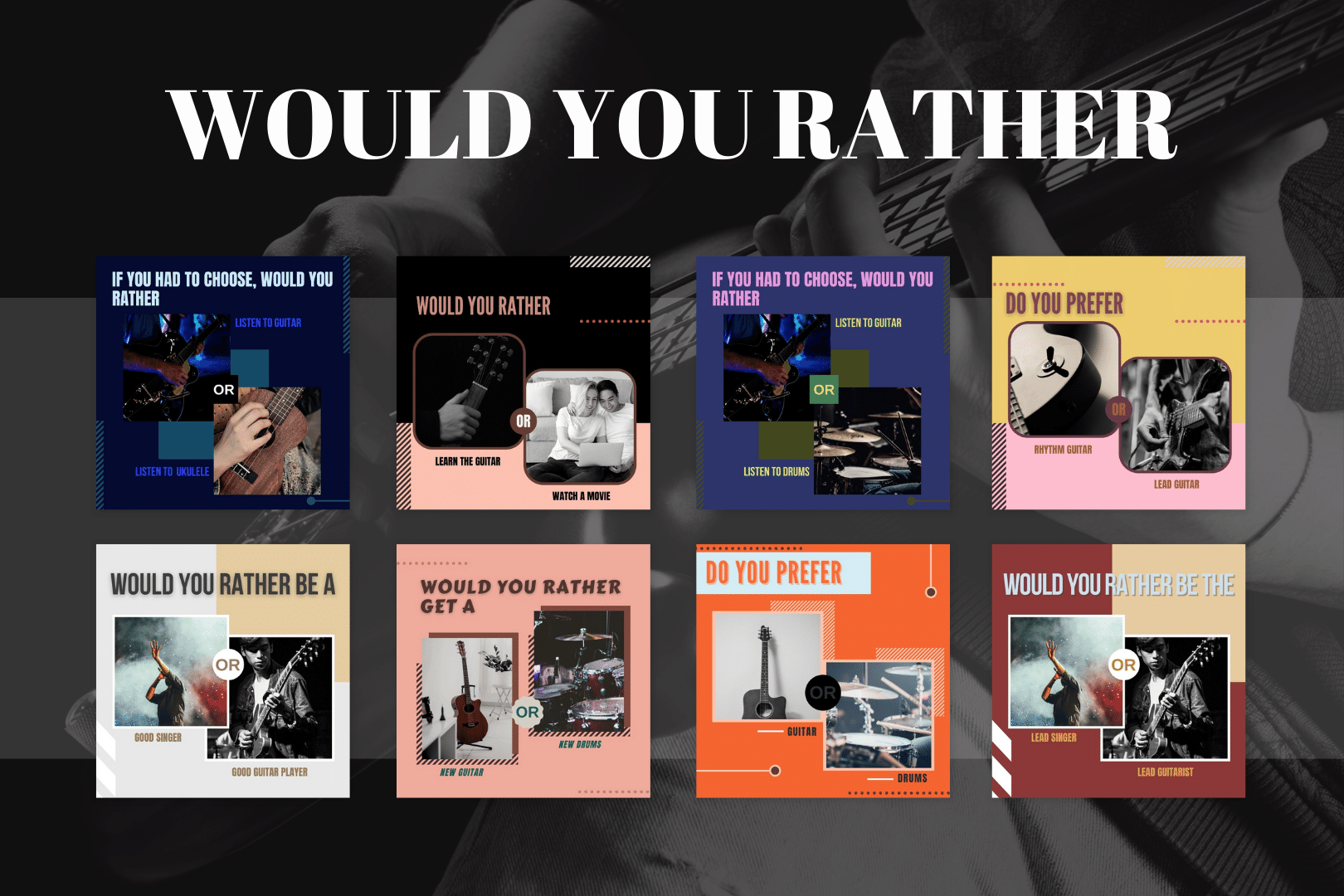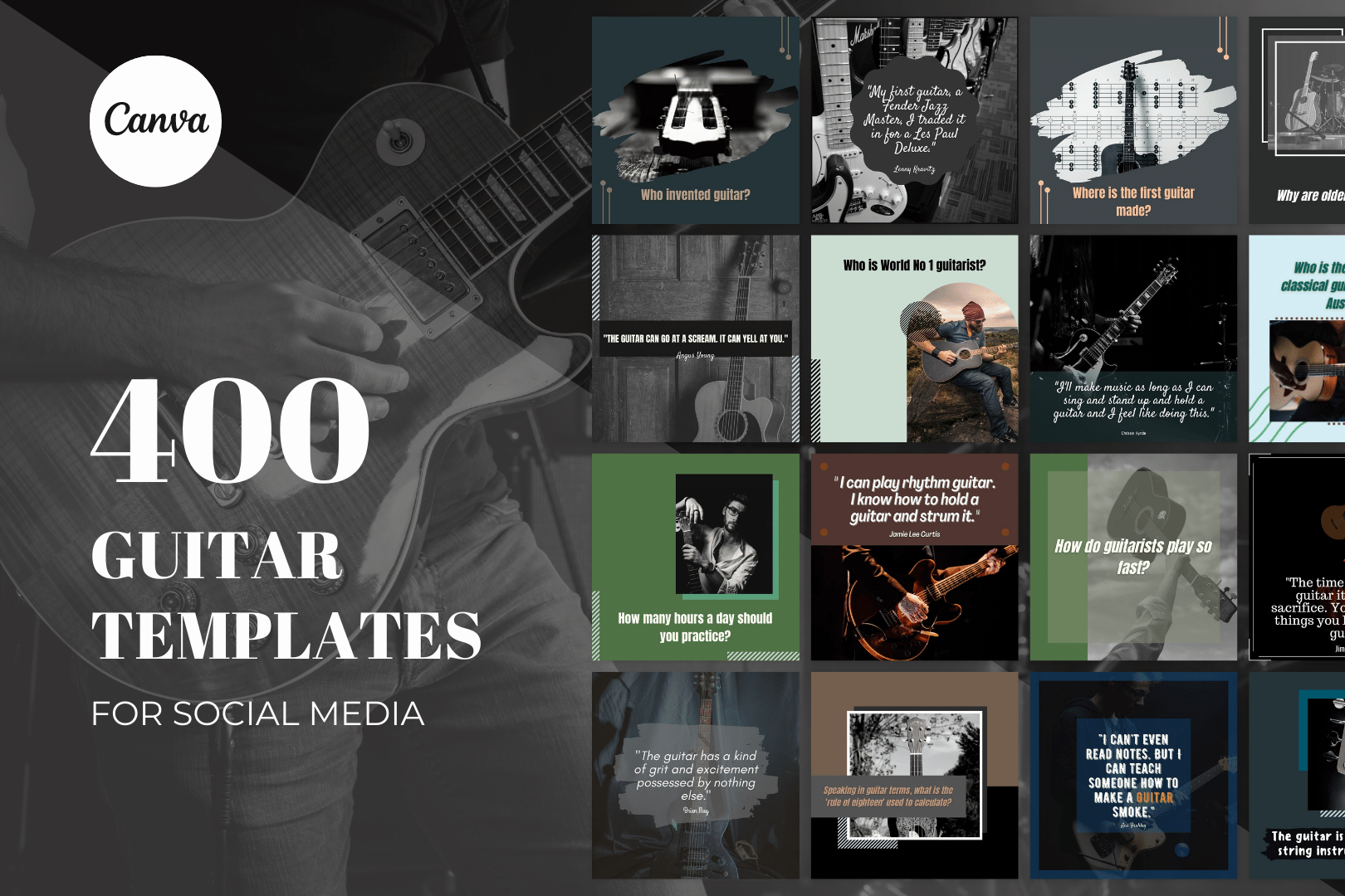 Ik heb deze templatebundel gemaakt voor muzikanten, artiesten en gitaarliefhebbers. Deze zorgvuldig geselecteerde kant-en-klare templates garanderen je toekomst als een motiverend en inspirerend merk op sociale media.