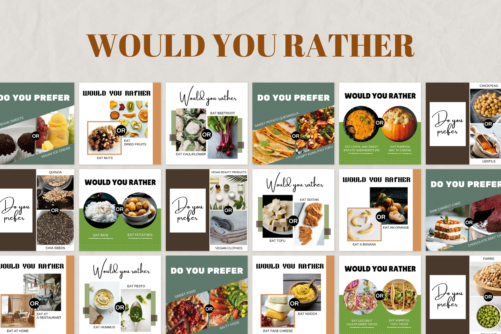 Ontvang 400 prachtige vegan templates voor social media. Ideaal als je jouw publiek wilt motiveren, inspireren en meenemen in een bewuste lifestyle die past bij jouw merk. Met deze bundel wordt zichtbaar zijn een stuk eenvoudiger en groeit je bereik, je volgers, je betrokkenheid en je omzet vanzelf met je mee.