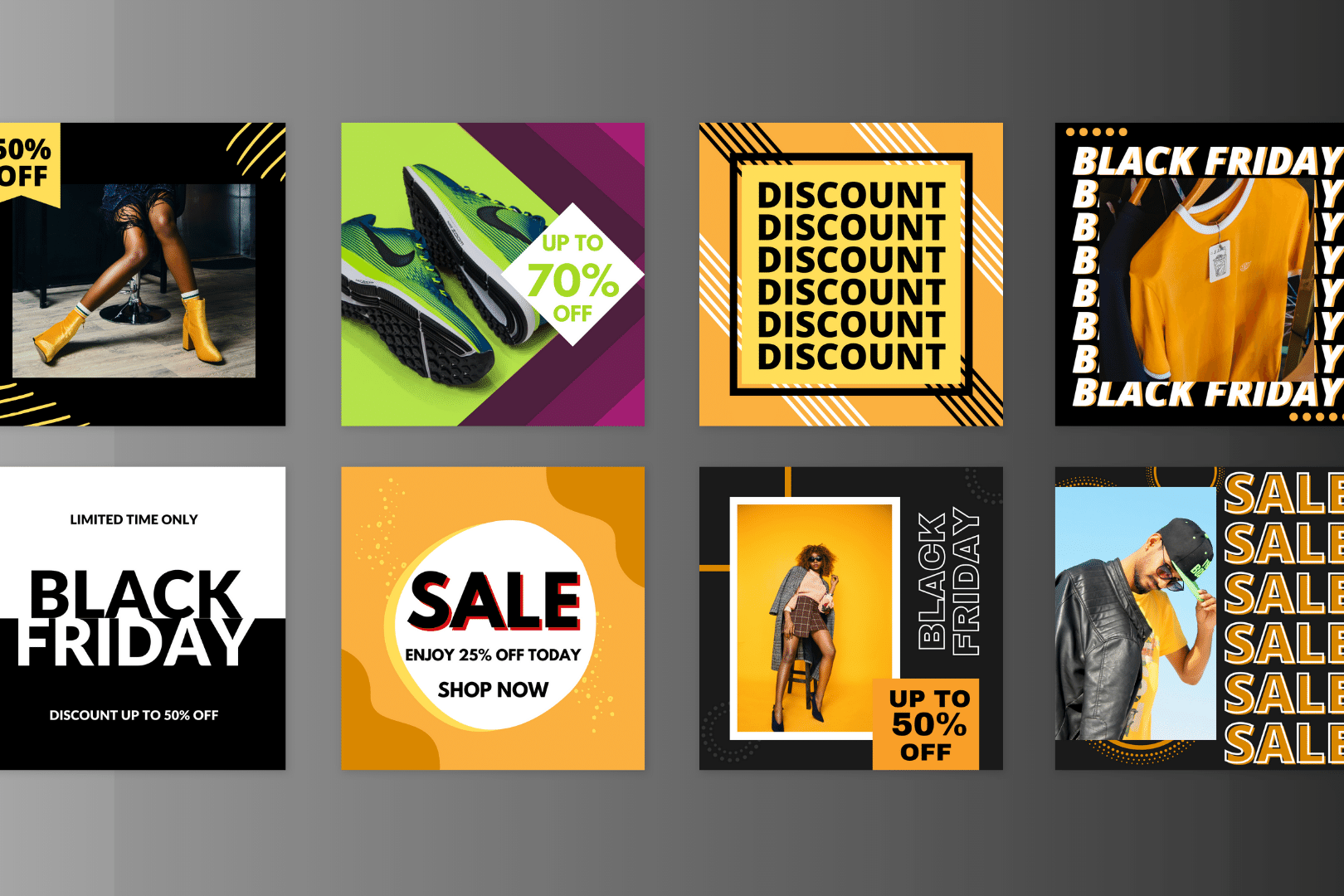 De Black Friday Sales Templates voor Social Media vormen jouw succeskit voor Black Week, Black Friday, Black Weekend en Cyber Monday.