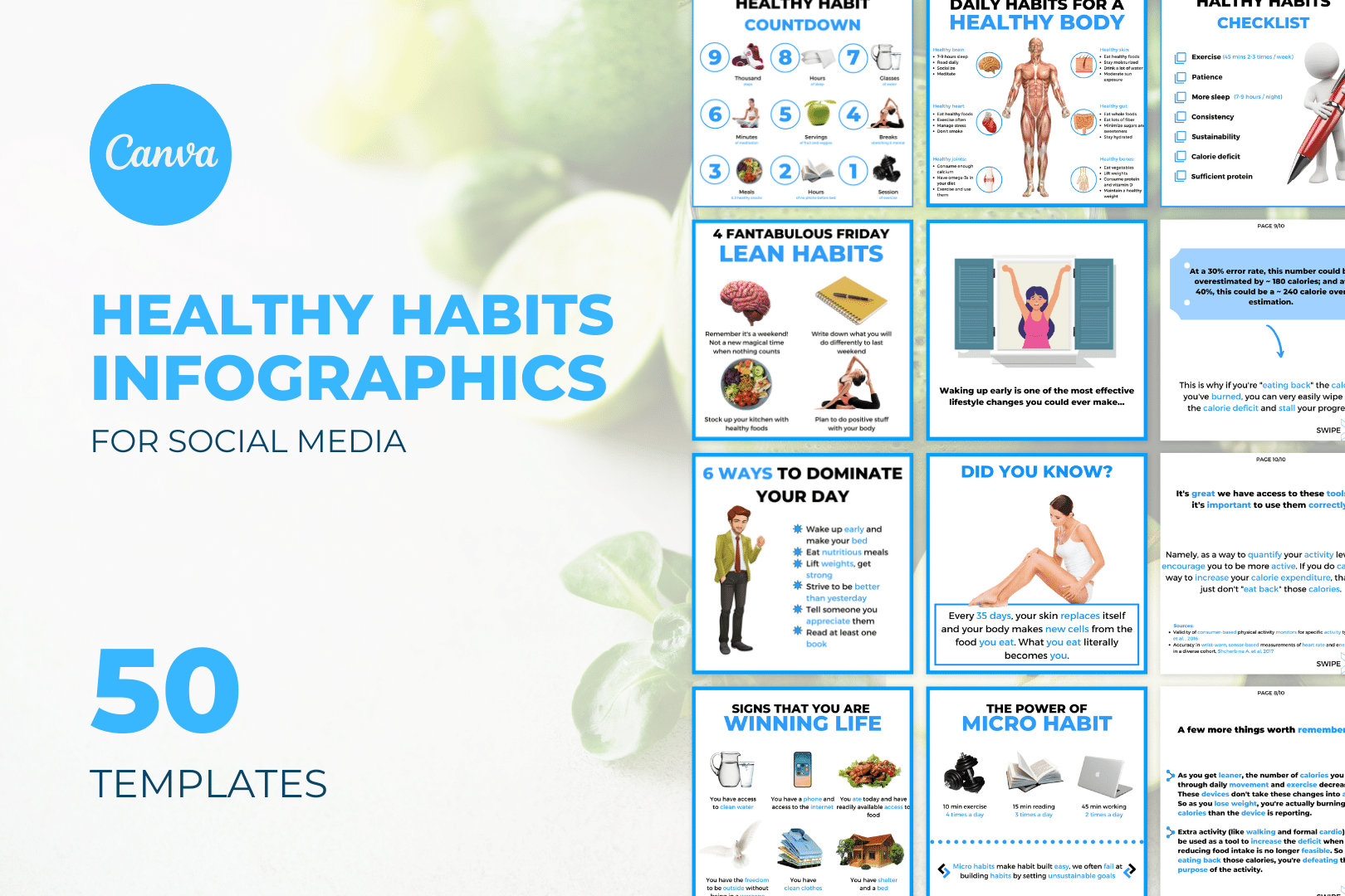 Ontvang 50 inspirerende infographics* over gezonde gewoontes voor je social media.
