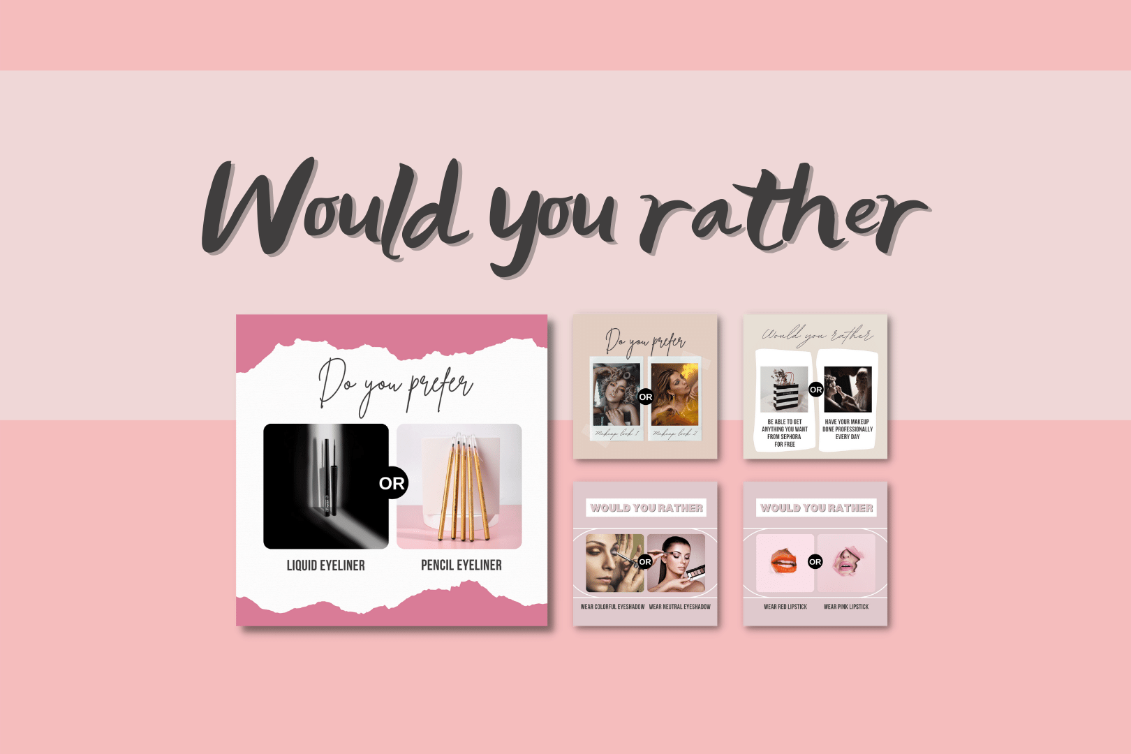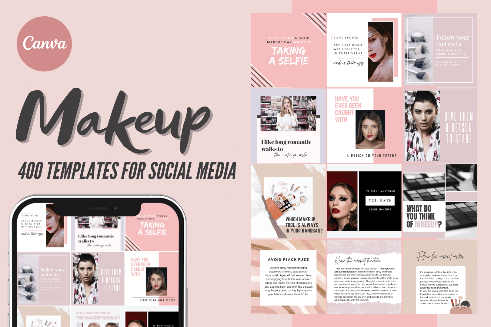 Met deze 400 kant-en-klare make-up templates geef je je social media een professionele én onweerstaanbare uitstraling. Je hoeft niks meer zelf te bedenken – alleen nog maar aanpassen in Canva en posten maar.